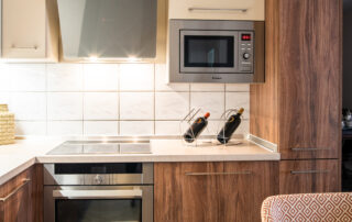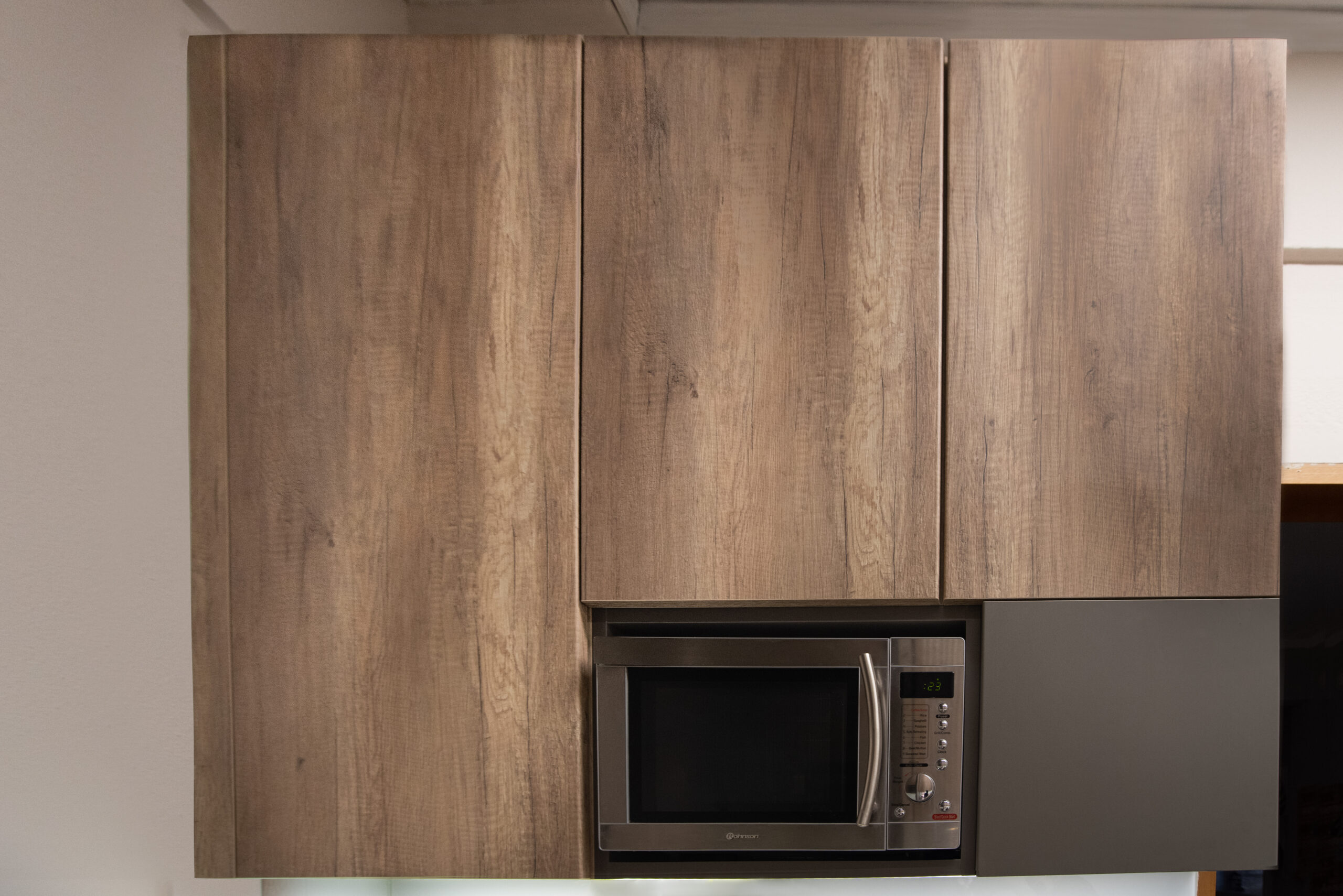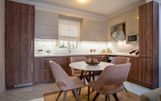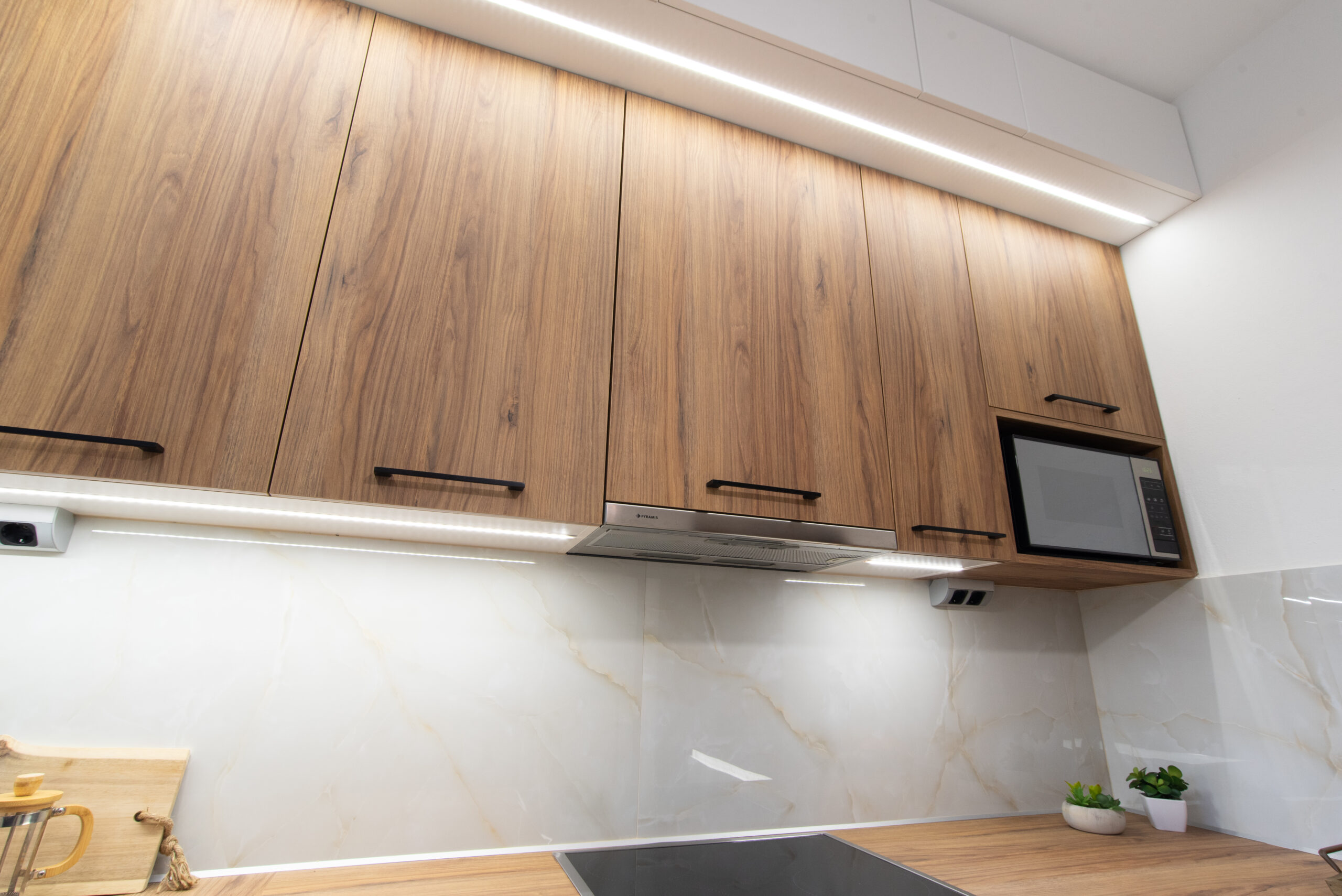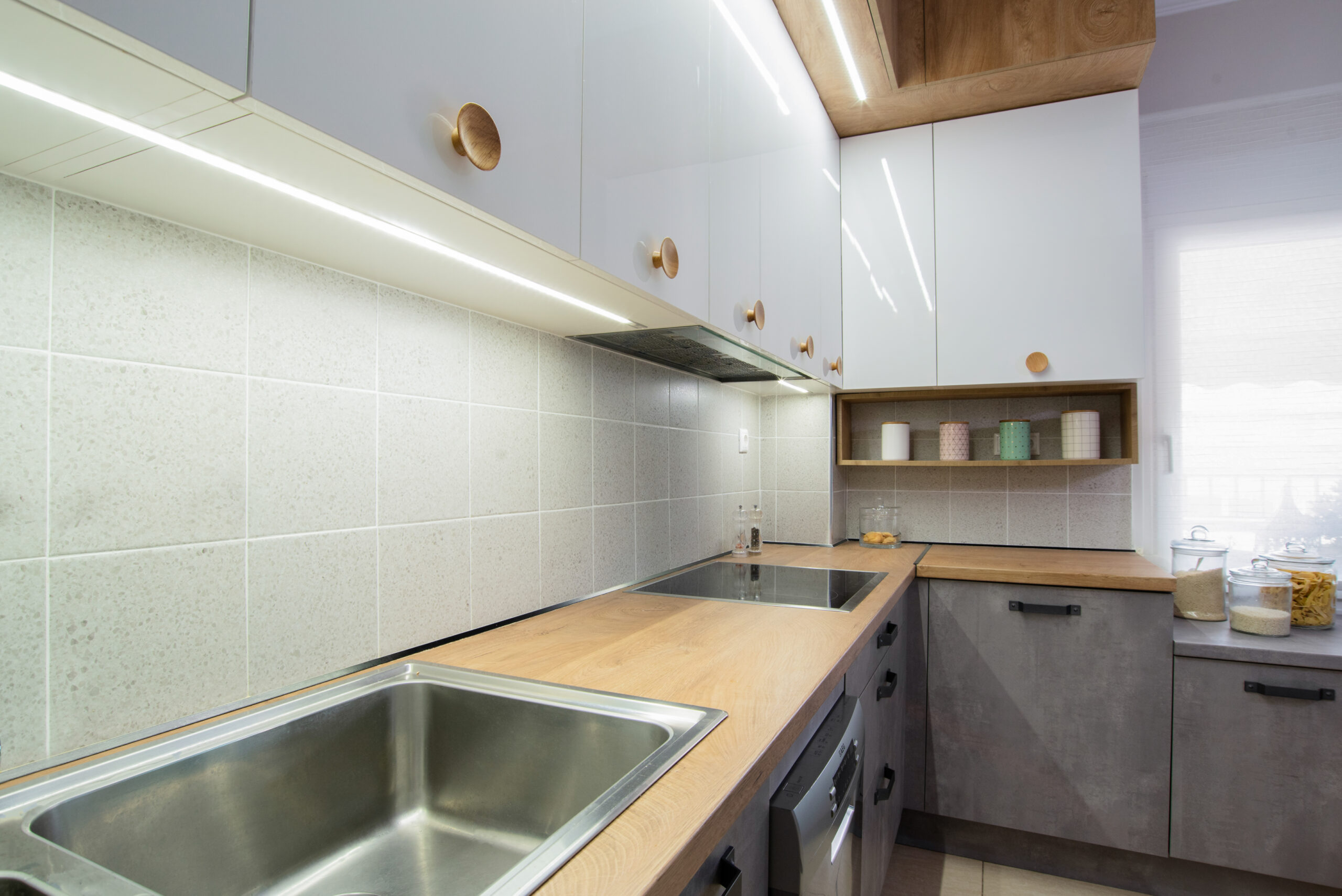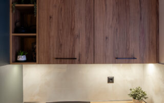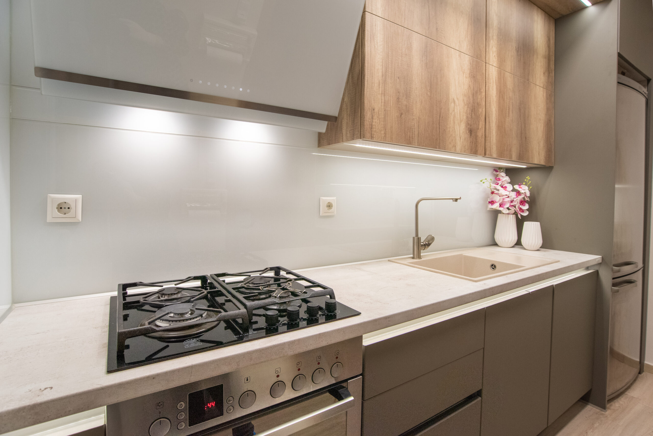 Η σύνθεση του πάγκου κουζίνας αποτελείται – με απλά λόγια – από ένα φύλλο HPL RESOPAL® πάχους 0,8 χιλιοστών, μορφοποιημένο σε προφίλ πάγκου και κολλημένο πάνω από το μπροστινό άκρο μοριοσανίδας πάχους 38 χιλιοστών. Επιπλέον στο κάτω μέρος είναι σφραγισμένος με ειδική αδιάβροχη υδατοφραγή.