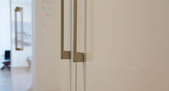 Η πλάτη των κουτιών κατασκευάζεται από μελαμίνη 8 χιλιοστών κι έχει κενό υγιεινής 1 εκατοστού, για την αποφυγή σχηματισμού υγρασίας ανάμεσα στον τοίχο και το κουτί. | Οι μεντεσέδες των πορτών είναι Αυστριακής κατασκευής. Η εγγύησή τους καλύπτει χρήση 200.000 χιλιάδων ανοιγμάτων. Επιπλέον, φέρουν μηχανισμούς τύπου «κλιπ», οι οποίοι συνδέονται κι αποσυνδέονται με μία κίνηση, εξασφαλίζοντας έτσι τη γρήγορη τοποθέτηση κι αφαίρεσή τους αντίστοιχα, καθώς επίσης και «ντούμπελ» στο τακάκι και στον μεντεσέ, γι’ακόμη μεγαλύτερη αντοχή. |